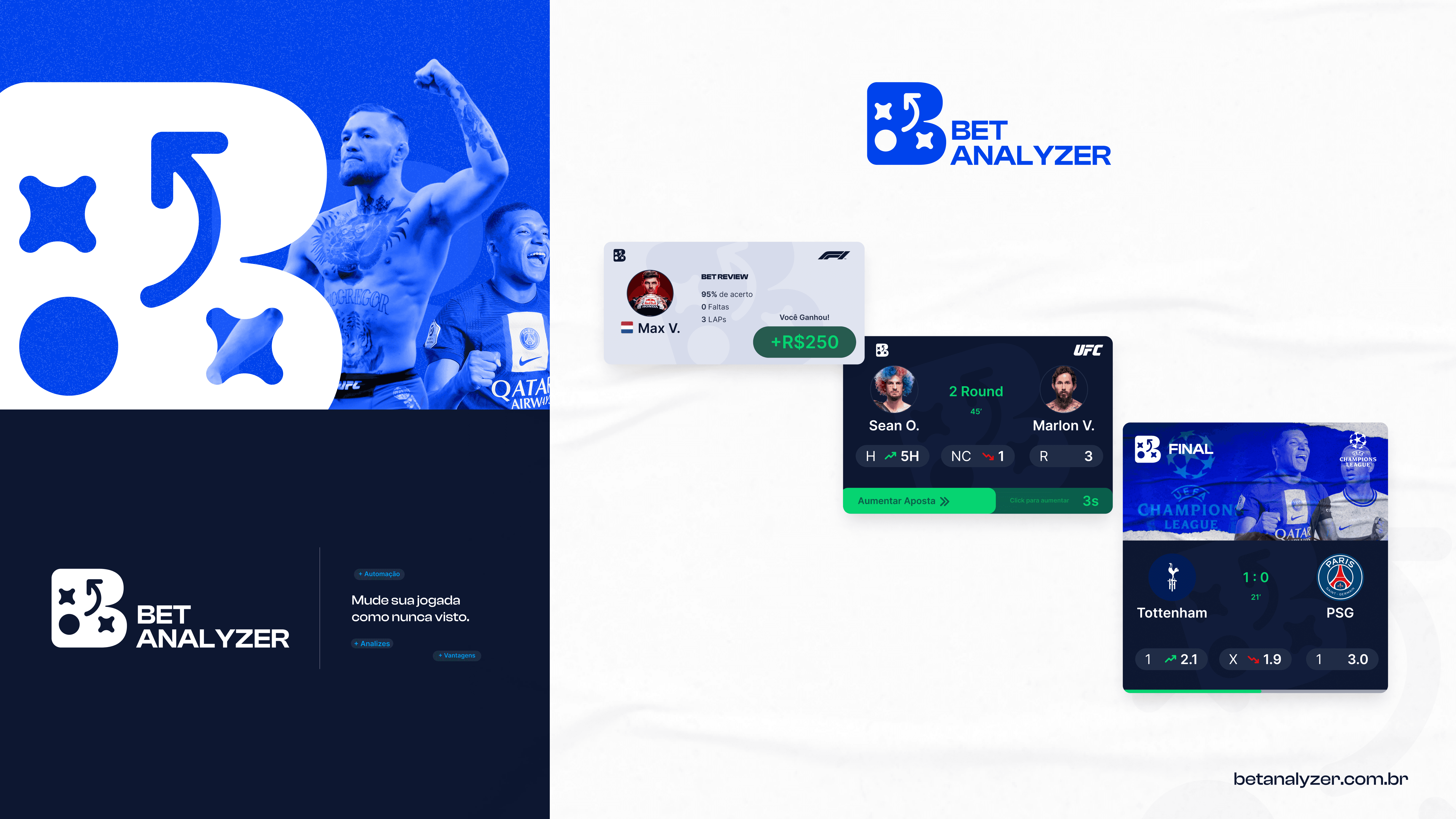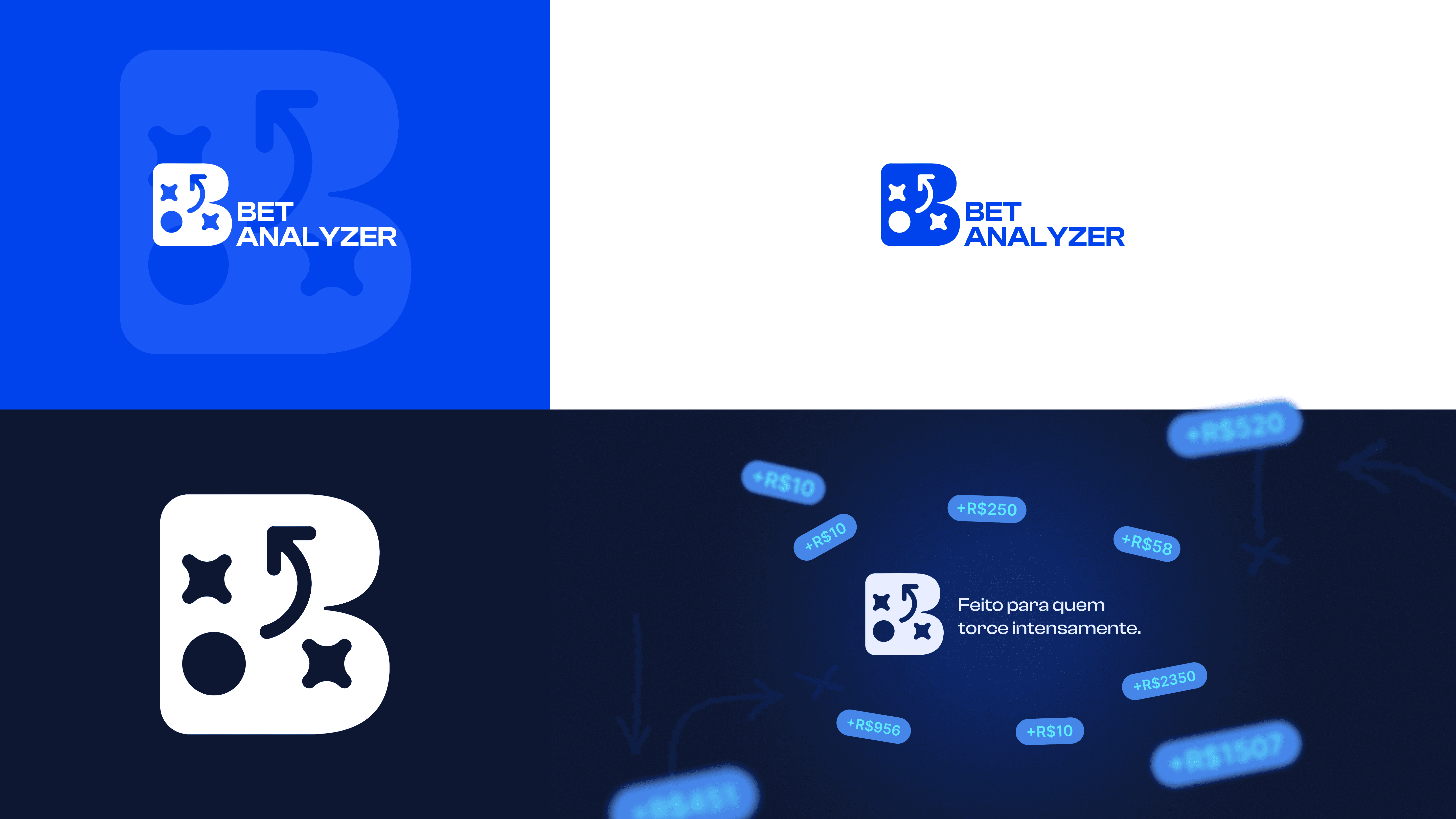 O maior desafio da comunicação em torno de Bets, se encontra justamente no maximalismo das marcas. Criando sempre elementos visuais que podem confundir os clientes, a Bet Analyzer veio para deixar tudo as claras. Uma identidade minimalista que une tecnologia, clareza e uma boa comunicação.
