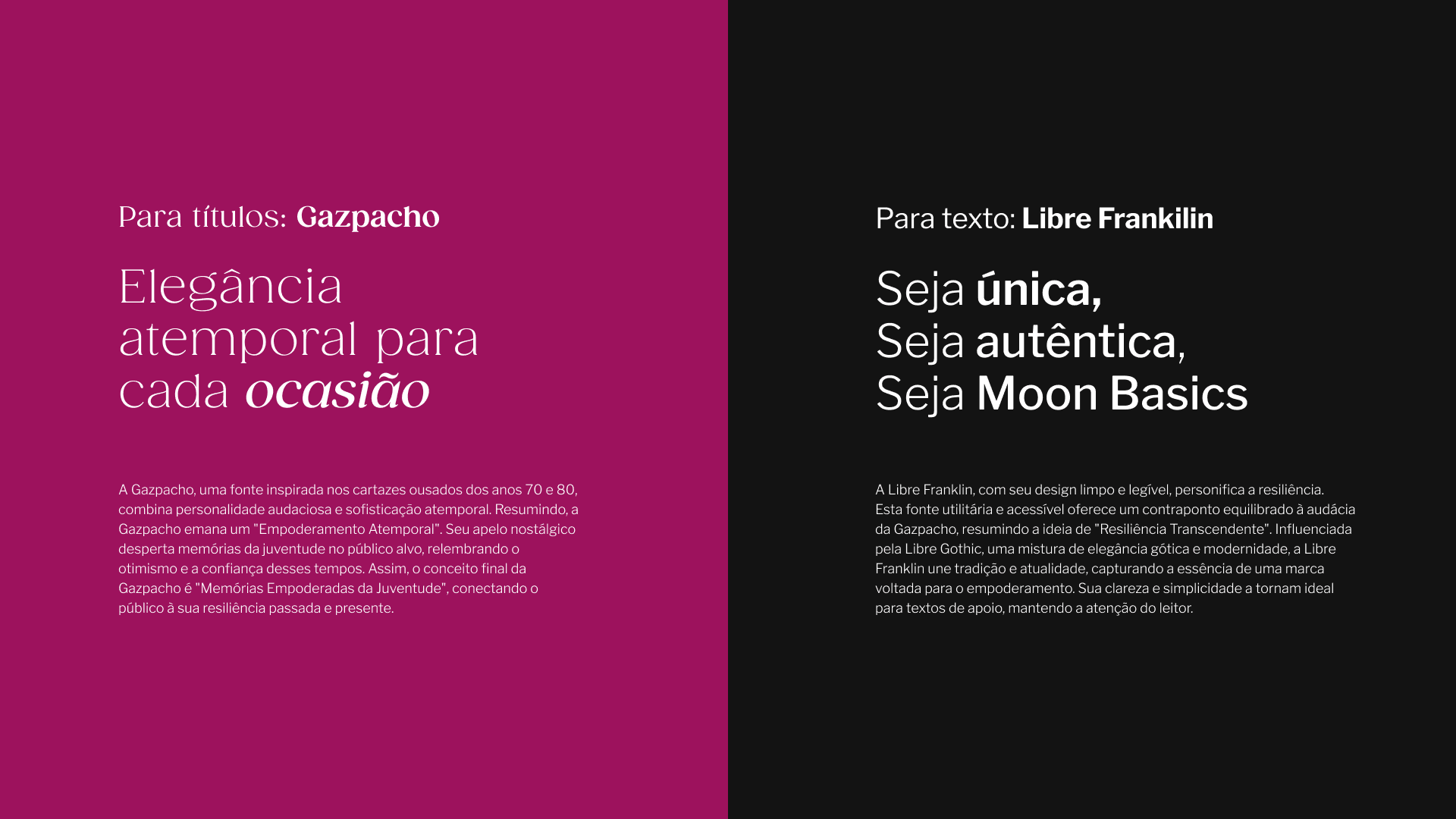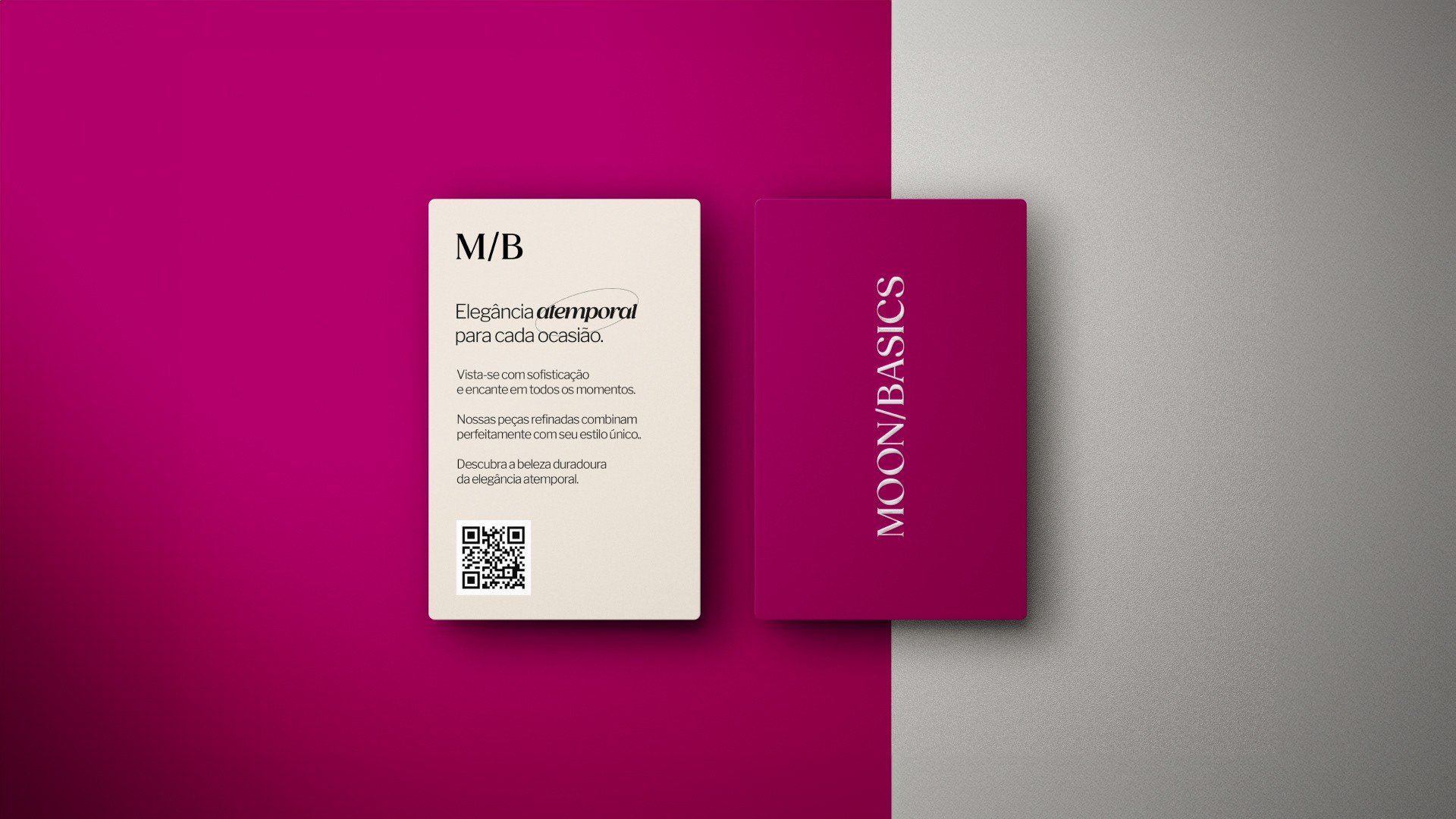 A partir de dados coletados em pesquisas, feedbacks e validações de mercado, estruturamos um reposicionamento de marca completo. O novo visual reflete não apenas a sofisticação desejada, mas também a maturidade e a evolução da Moon Basics. O resultado foi uma identidade visual que conecta a marca de forma autêntica ao seu público atual, fortalecendo seu posicionamento e preparando o terreno para os próximos passos de crescimento.
